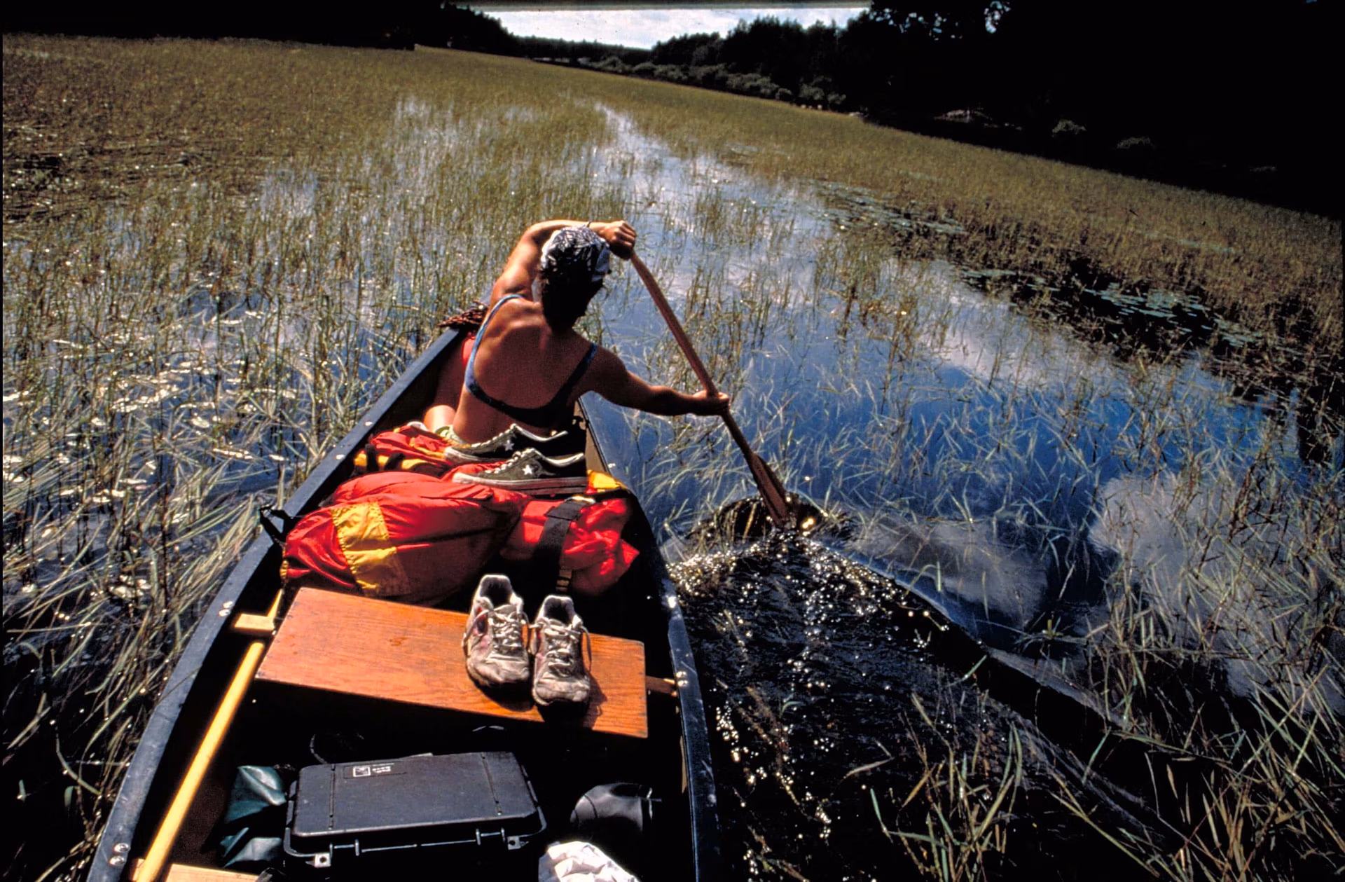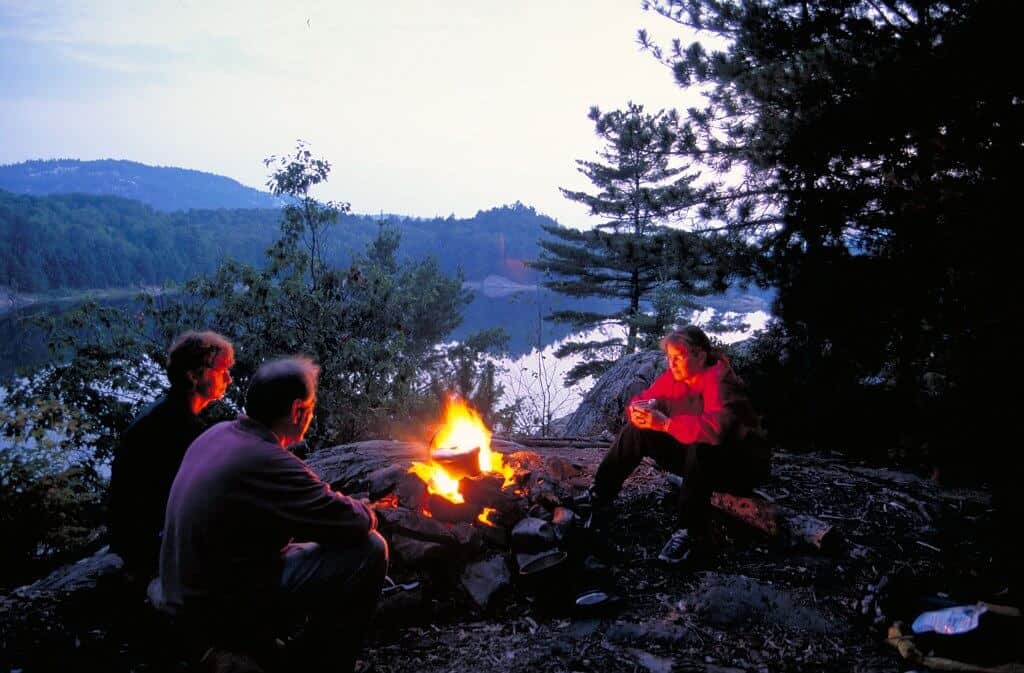 I love camping in Algonquin Park’s backcountry. The deeper you go, the more isolated and spectacular the camping gets. A swim, the campfire, and excellent food. Warm Sleeping Bag. And that west wind whistling high above.